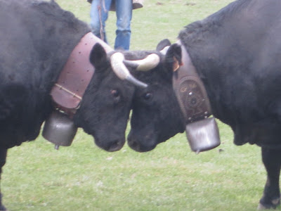 It seems that most things in this lovely valley I live in revolve around cows. The beloved Fontina that is eaten at every meal, the cows standing the the middle of the road blocking the traffic on the way to work, regional competitions for leather workers who make very fine cow bell collars, metal workers who make special cow bells, a giant festival for when the cows come back down from the mountain at the end of the summer…. And the battle of the queens (Bataille des Reines).