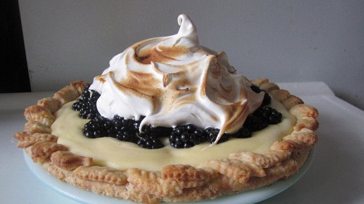 | My pie… lemon curd Italian merengue with a blackberry compote. I ripped it from the cover of ‘Bon Appetit’… pretty but too uppity |