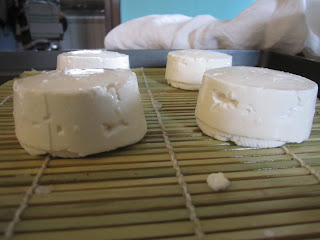 Then I took them out, let them dry off a bit, and VOILA! Cheese! They are really tasty, especially with a little bit of just pressed olive oil mixed with a little bit of pesto drizzled on top.