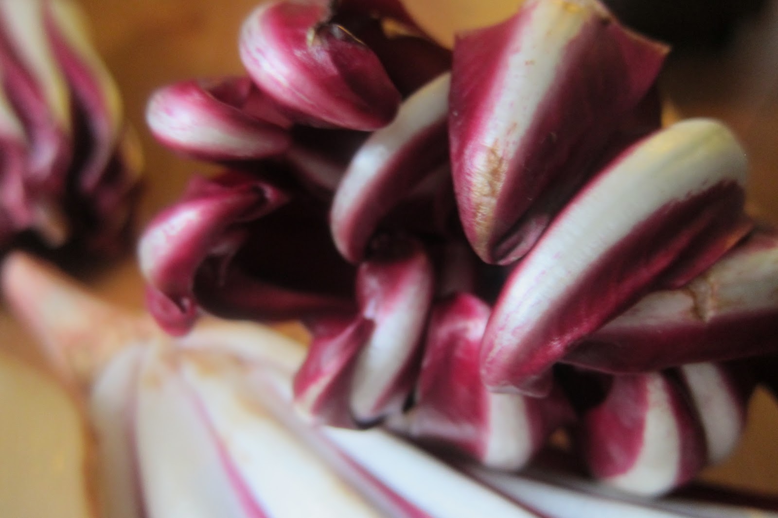 But my favorite kind of radicchio is treviso radicchio. Why, do you ask? First, it is gorgeous, kind of looks like an orchid. Or a crazy squid if a squid was feeling like a vegetable.